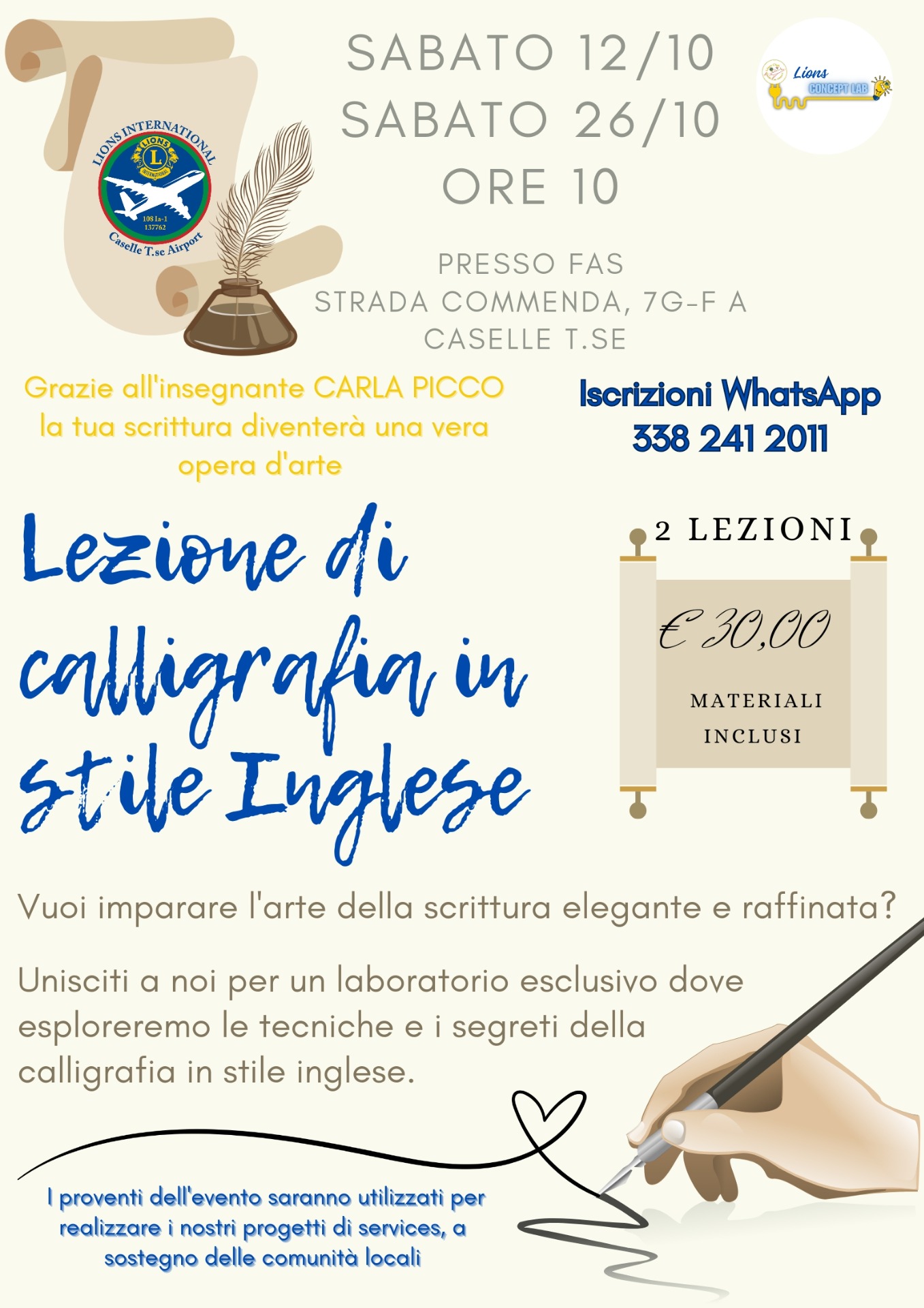 Partecipa al nostro esclusivo laboratorio con l'insegnante Carla Picco, che ti guiderà alla scoperta dell'arte della scrittura elegante e raffinata nello stile inglese